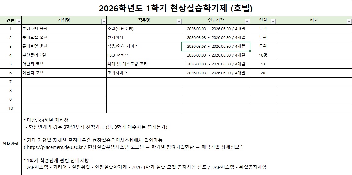 (수정) 2026학년도 1학기 현장실습학기제 실시 안내