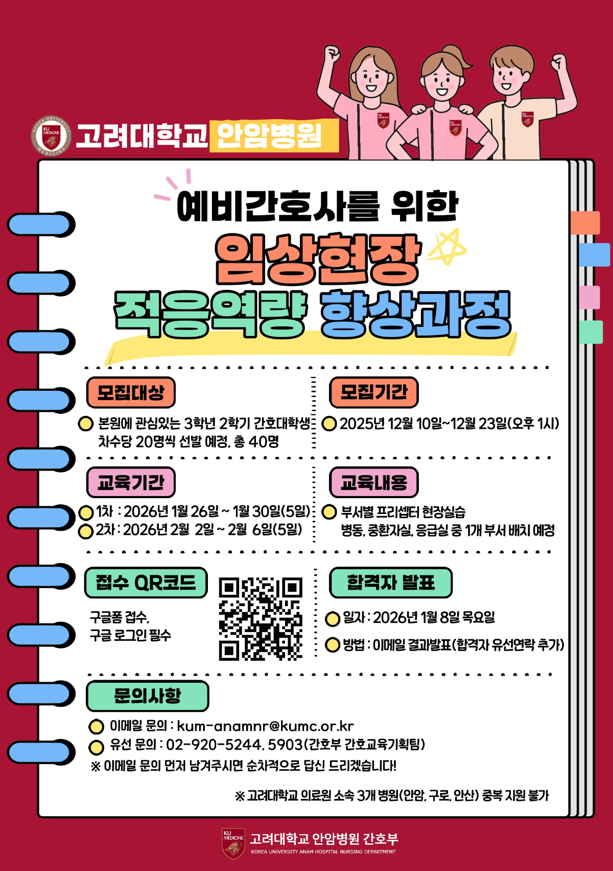 [고려대학교 안암병원] 예비간호사를 위한 임상현장 적응역량 향상과정 안내
