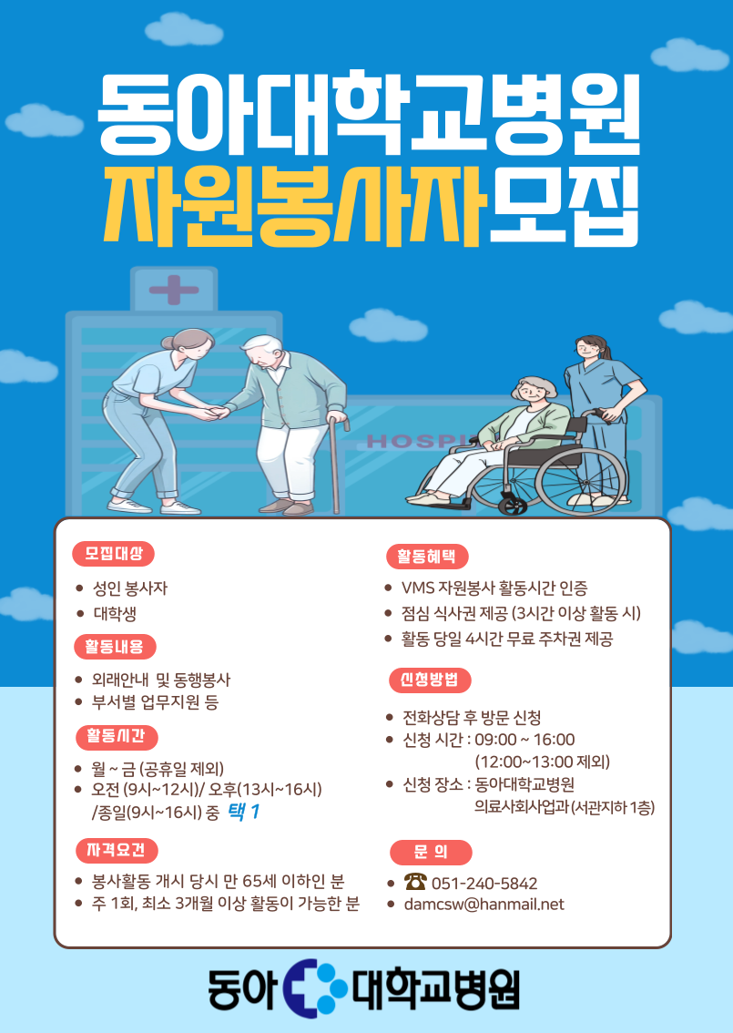 [동아대학교병원] 자원봉사자 모집 안내